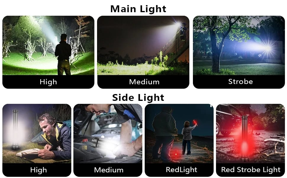 COB Side lighting Mode: High/Low/Red/Red Strobe Flashing