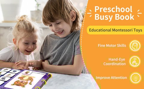 ☑【 Toddler Activities 】Busy book is a toddler learning toys, designed to improve motor skills, cognitive skills, basic literacy, memorization, identification, and hand-eye coordination (including kid with autism and kid with speech development delays).