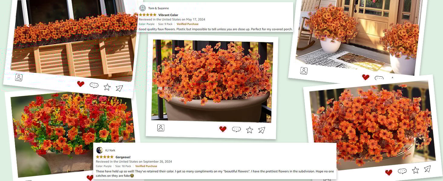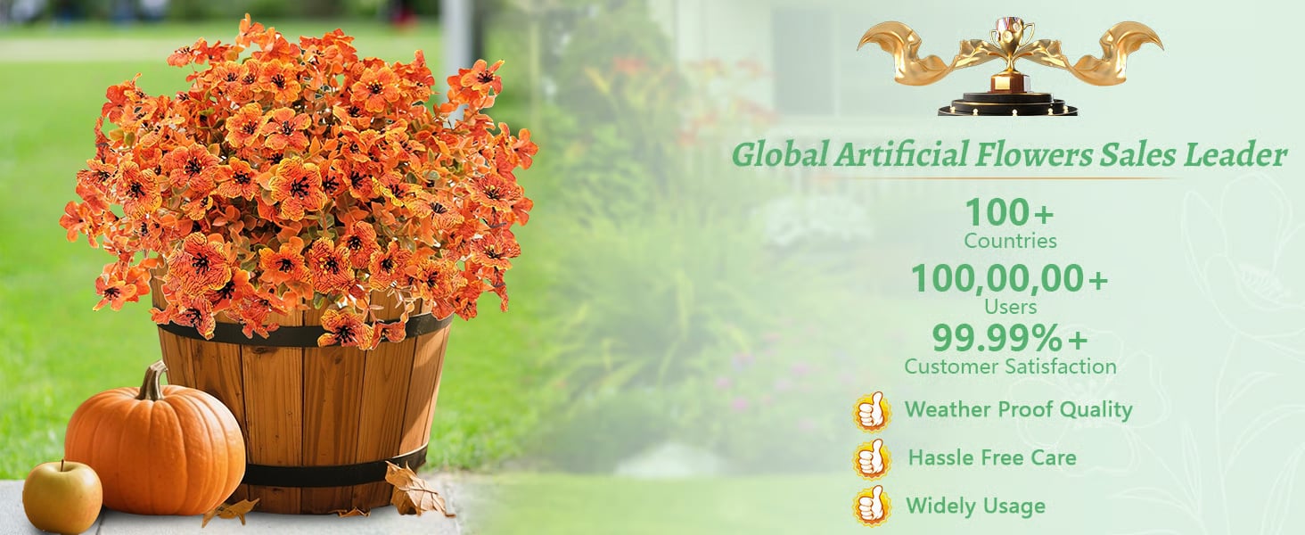 The perfect no-fuss way to bring bold autumn color to your porch, patio, or garden. With rich, vibrant blooms and a full, lifelike look, they stay stunning through sun, rain, and windโno watering required! ๐