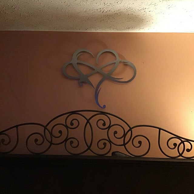 💞Infinity sign metal wall art. This unique and fun infinity symbol intertwined with a heart makes a great gift for engagements, weddings, anniversaries, birthdays, Valentine's day, or Christmas. Great love decor addition to a master bedroom or family gallery wall.
