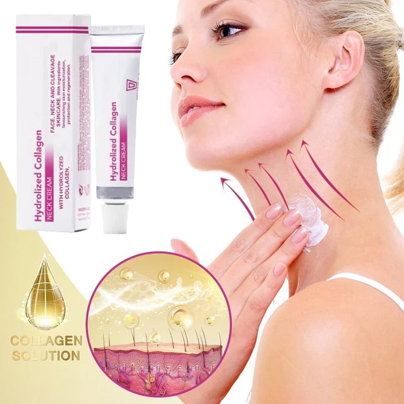 Hydrolized Collagen Neck Cream was launched for skin's moisturizing and rejuvenating effects, it is mainly used to delay skin ageing, improve natural moisturizing and help to prevent and reduce the appearance of wrinkles, so that everyone can have beautiful youthful skin. The cream contains hydrolyzed collagen, which is a form of collagen that has been broken down into smaller fragments for better absorption by the skin.