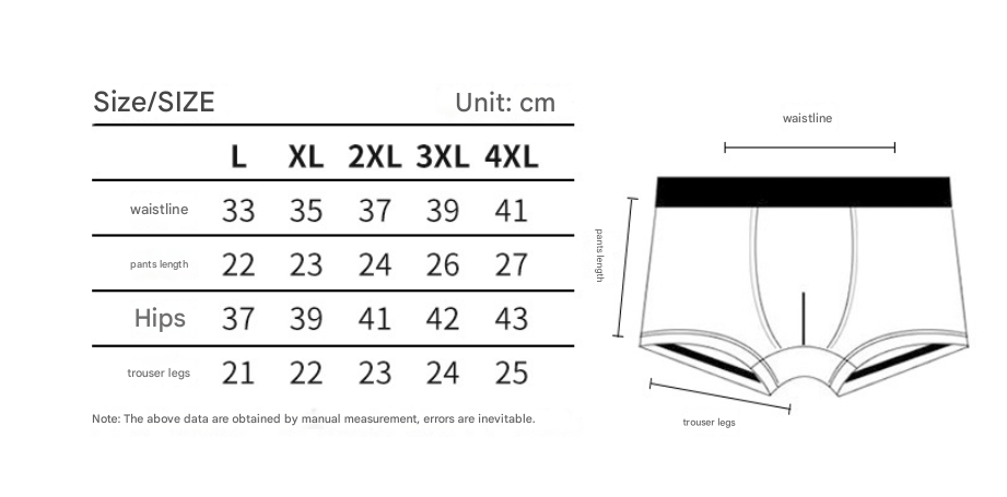 This detailed size chart provides precise measurements and illustrations, ensuring that you can confidently choose the right-sized fibre boxers.