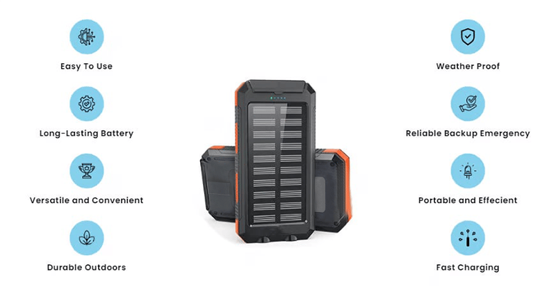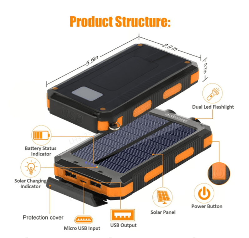 Experience limitless charging potential with our solar power bank. Compact and efficient, it captures sunlight to keep your devices juiced up on the go. Embrace freedom from outlets and enjoy uninterrupted adventures wherever the sun shines. a game-changer in portable charging technology. Say goodbye to the constraints of traditional power banks and embrace the boundless energy of the sun.