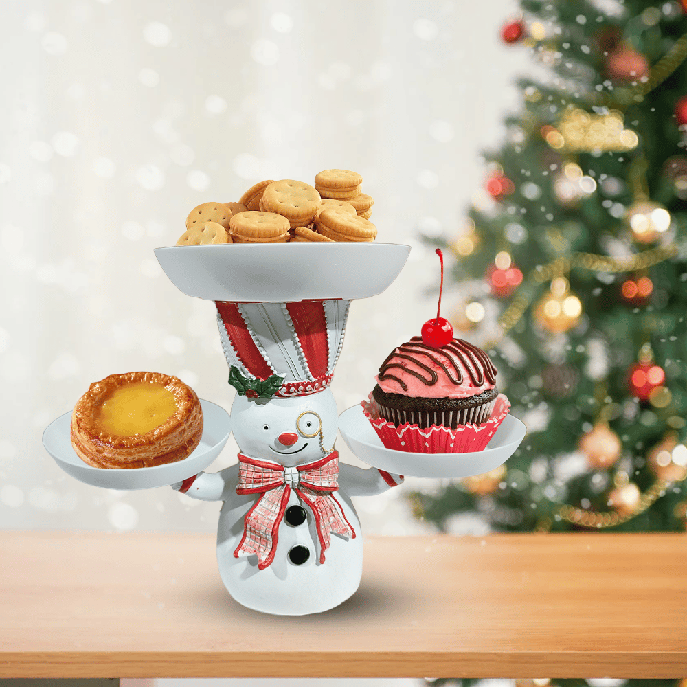 Adorable snowman face smiles at your each time you look, Makes a wonderful gift this Christmas.This Snowman Treats Holder props three plates for serving up all kinds of goodies or devilishly tasty finger foods.